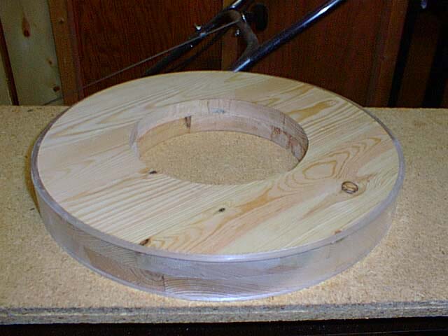 sized and sanded together, then a 5-1/2" hole was cut in the top disc to match