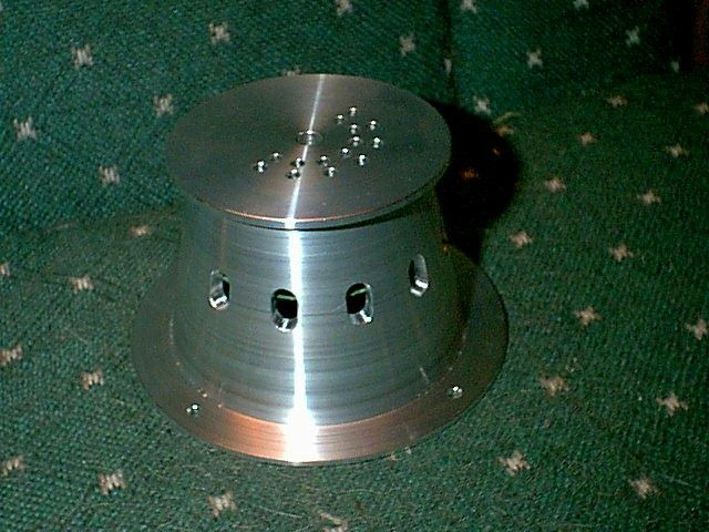 Brain cup - CNC machined 6061 aluminum. I drilled 2 separate rows of pushrod holes accommodate most any cam. I used a wire spring clip for lightrod mounting.