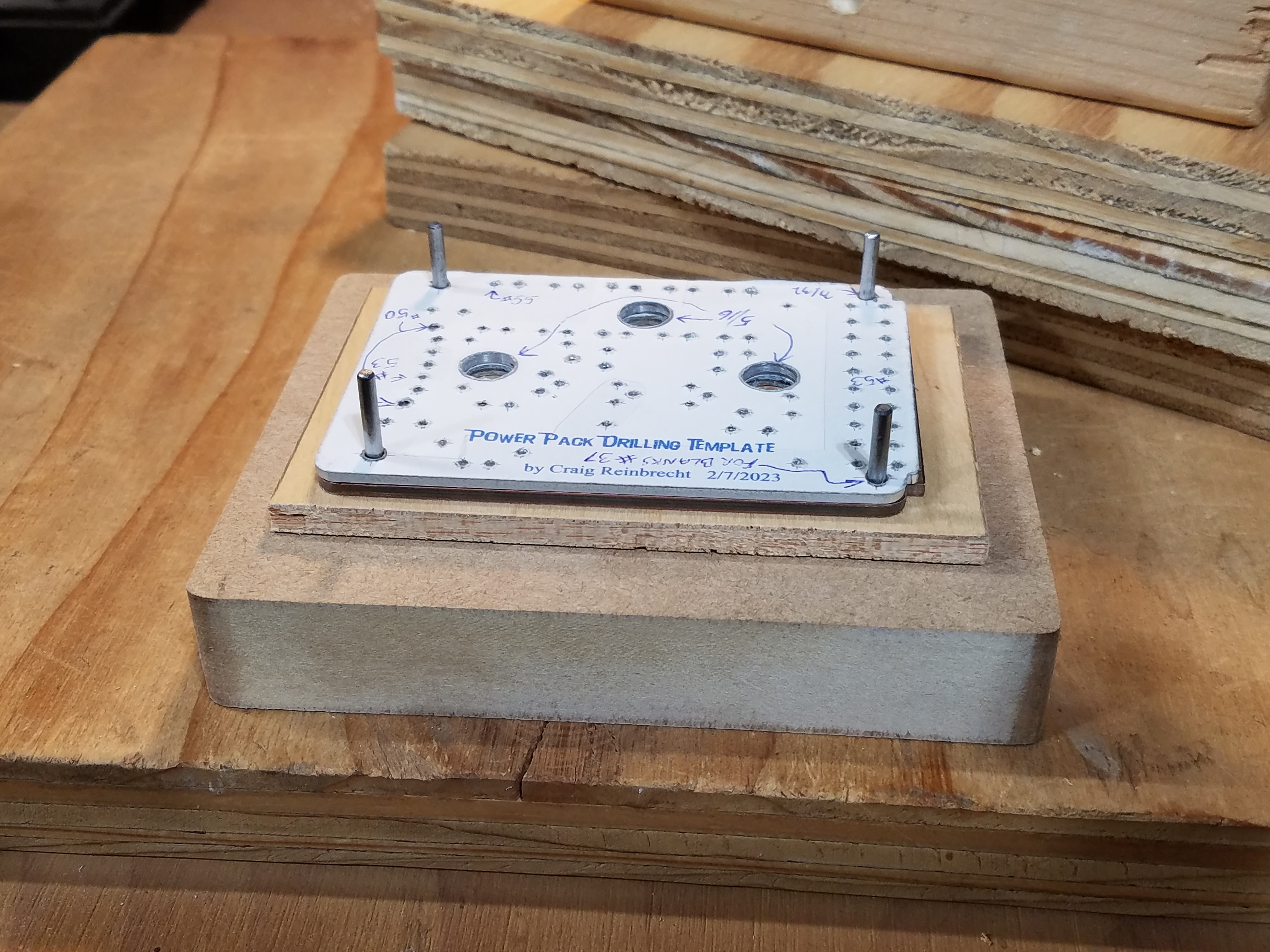First, I used my aluminum jig to drill the 4 corner holes precisely in the front and back photos. Then I