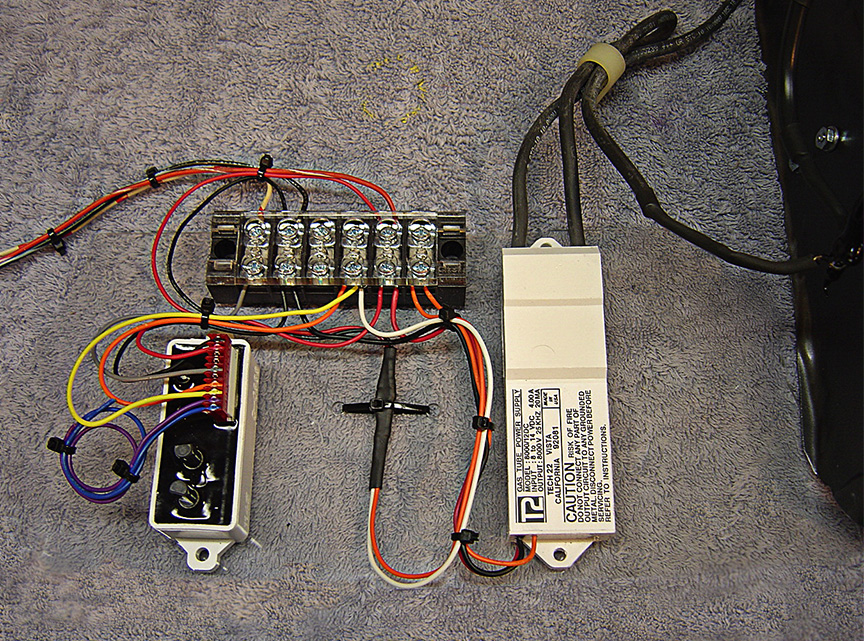 This is a picture of David S’s excellent Neon wiring setup. (Notice the shrink-wrapped Signal Invertor)